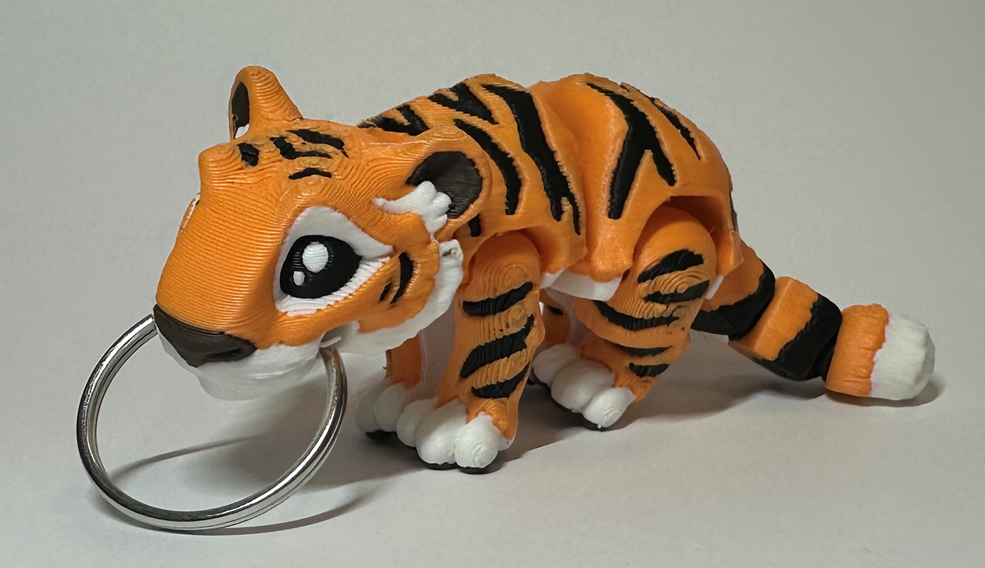 Maak kennis met het flexibeest. Een 3D geprinte sleutelhanger die niet stil kan zitten! Dankzij zijn scharnierende gewrichten beweegt hij soepel heen en weer. Elk flexibeest Wordt met precisie 3D geprint van PLA-filament, een licht en milieuvriendelijk materiaal op basis van mais. Dat maakt deze beestjes niet alleen stevig , maar ook duurzaam. Of je nu kiest voor een vrolijke tijger, lief schaapje of stoere haai – ze wiebelen, kronkelen en draaien alsof ze tot leven komen. Leuk om naar te kijken, nog leuker om mee te spelen.